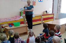 Девочка чумазая пришла из стихотворения А. Барто пришла к малышам 1 младшей группы. Ребята помогли Кате умыть лицо, почистить платье, сделать прическу.