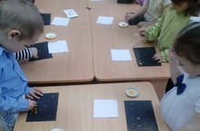 Продолжили изучение космоса воспитанники 2 младших групп. Сегодня они рассматривали звезды на небе. Потом каждый, с помощью помощницы - ватной палочки, нарисовал свое звездное небо!