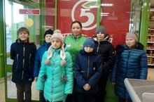 В назначенный день учащиеся 5 класса отправились на экскурсию в супермаркет «Пятерочка»В ходе экскурсии обучающиеся познакомились с отделами супермаркета, потренировались самостоятельно определять стоимость товара на специальном аппарате – сканере «Прайсчекер»,научились делать выбор при покупке товара, самостоятельно совершили покупку.