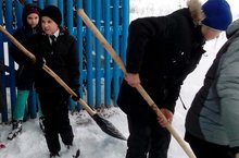 Учащиеся 5 и 7 классов помогли пожилым людям в очистке снега на прилежащей к дому территории.