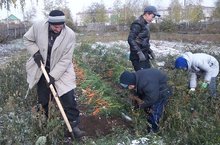 Во время проведения субботника, учащиеся старших классов участвовали в уборке овощных культур на пришкольном участке.