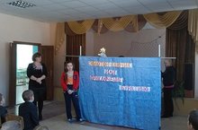 Для ребят начальных классов совместно с сельской библиотекой было проведено мероприятие по книге А. Н.Толстого "Золотой ключик или приключения Буратино". Вначале Ольга Владимировна вместе с Мариной Геннадьевной провели викторину по данной книге, а затем был организован показ кукольного театра.