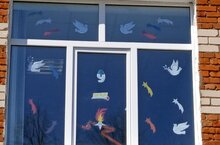 Обучающиеся 8 класса приняли участие в акции "Окна Победы", оформив окно своего кабинета красочной, праздничной атрибутикой.