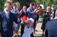 В школе прошла торжественная линейка, посвященная Дню знаний. Для троих первоклассниц прозвенел первый школьный звонок.