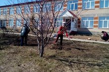 Обучающиеся и весь коллектив вышли на уборку пришкольной территории.