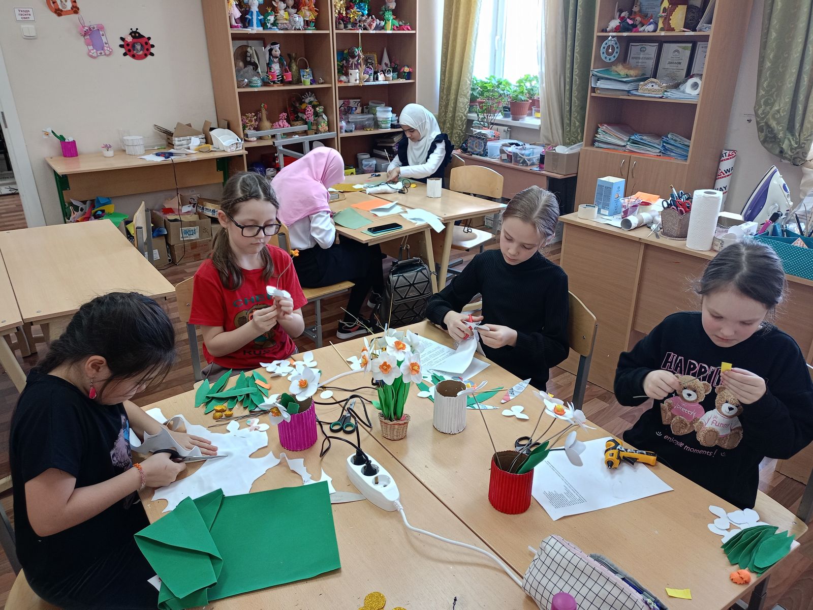 Для обучающихся объединения «Творческая мастерская» педагог дополнительного образования Сороковнина Г. А. провела мастер-класс по изготовлению весенних первоцветов из фоамирана.
