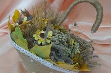 Обучающиеся объединения дополнительного образования "Прикладное искусство" под руководством педагога Сороковниной Г.А. изготовили осеннюю композицию корзинку с грибами.