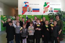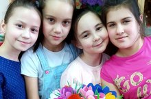 Учащиеся объединения дополнительного образования "Прикладное творчество" (педагог Сороковнина Галина Алексеевна) изготовили букет цветов на 8 Марта своим мамам.