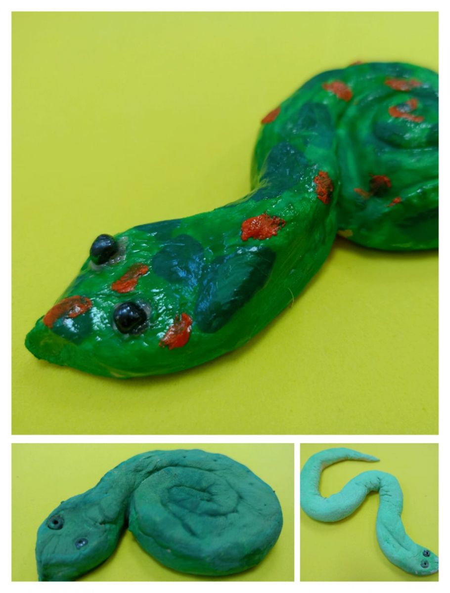Обучающиеся объединения дополнительного образования «Творческая мастерская» изготовили символ года – веселых змеек из массы для папье-маше. Лепка – это одно из художественных средств для эстетического воспитания детей школьного возраста. Она развивает мелкую моторику и память, помогает чувствовать формы, цвета и фактуры.
