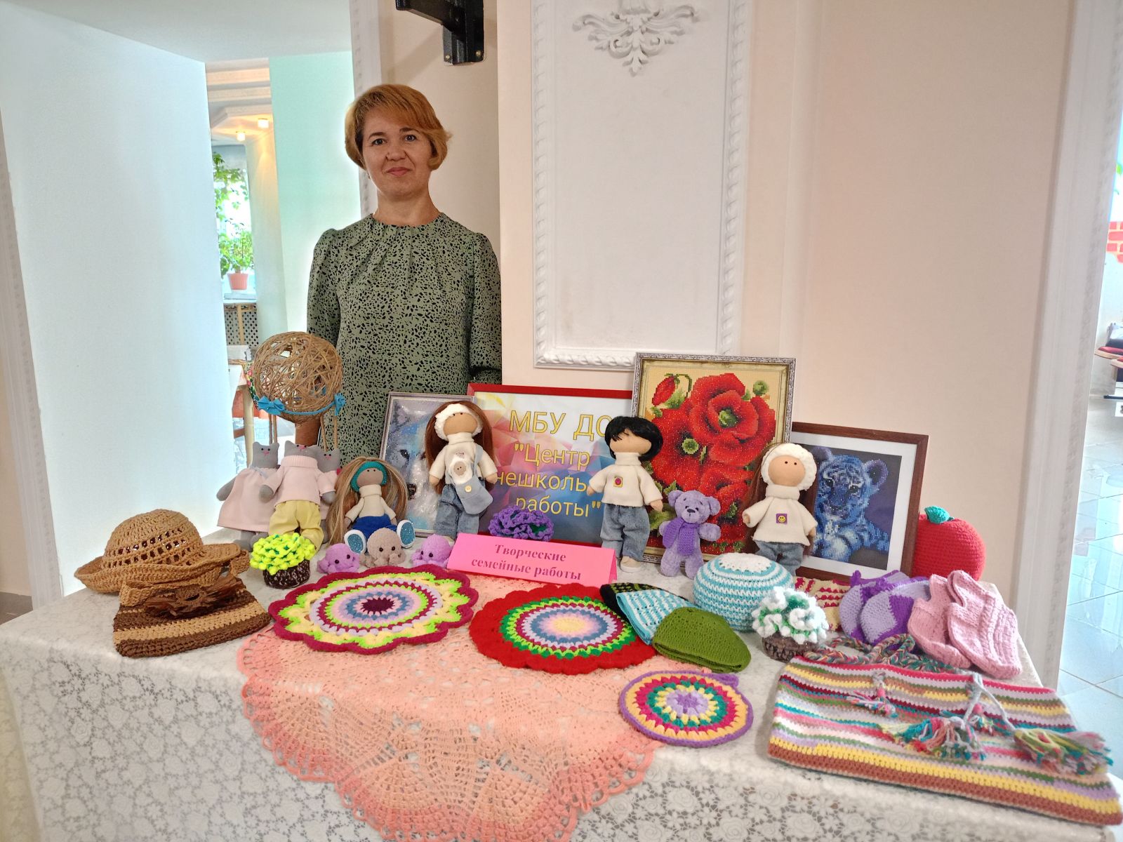 На пленарном заседании августовского совещания педагогических работников специалисты МБУДО «Центр внешкольной работы» подготовили выставку «Творческая семья». Две семьи Миннуллиных, а именно мама Зульфия Исрафильевна и дочь Камиля, а также мама Лилия Ильгамовна и дочь Амина предоставили свои прекрасные работы.