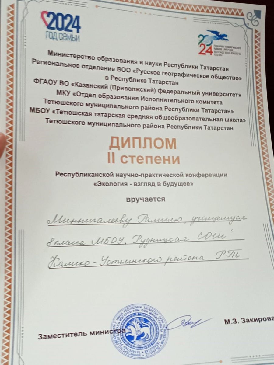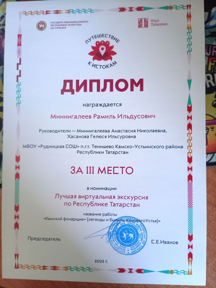 Миннигалеев Рамиль 3 место в ХIV Республиканском конкурсе «Путешествие к истокам»