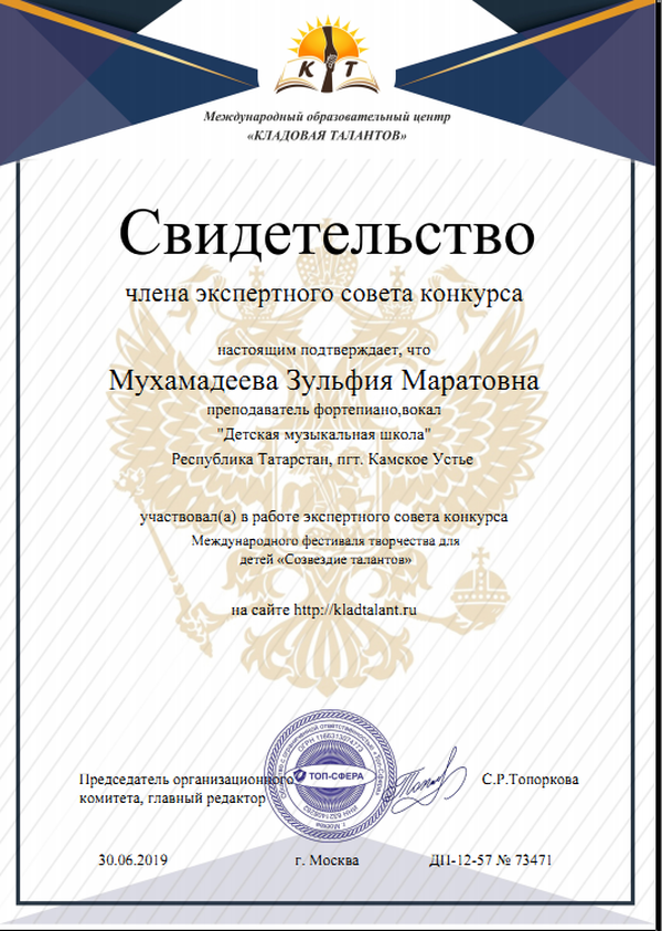 Руководитель: | Мухамадеева Зульфия Маратовна |