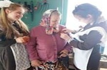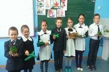 "Георгий тасмасы" акциясе старт алды. Укучылар авылдашларны Җиңү бәйрәме белән котладылар һәм Георгий тасмасы тактылар.