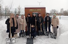 Обучающиеся 2-5 классов совместно с советником по воспитанию Сафиной М.С. и классными руководителями Латыповой Р. Садреевой Г. очистили от снега территорию памятника погибшим воинам в годы ВОВ.