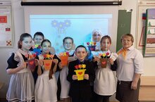 Советник директора по воспитанию и взаимодействию с детскими общественными объединениями - Юсупова Д. Г. совместно с учениками 5 класса изготовили поздравительные открытки для любимых мам. -