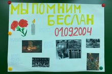 10 класс изготовил инфомационный стенд "Мы помним, Беслан"