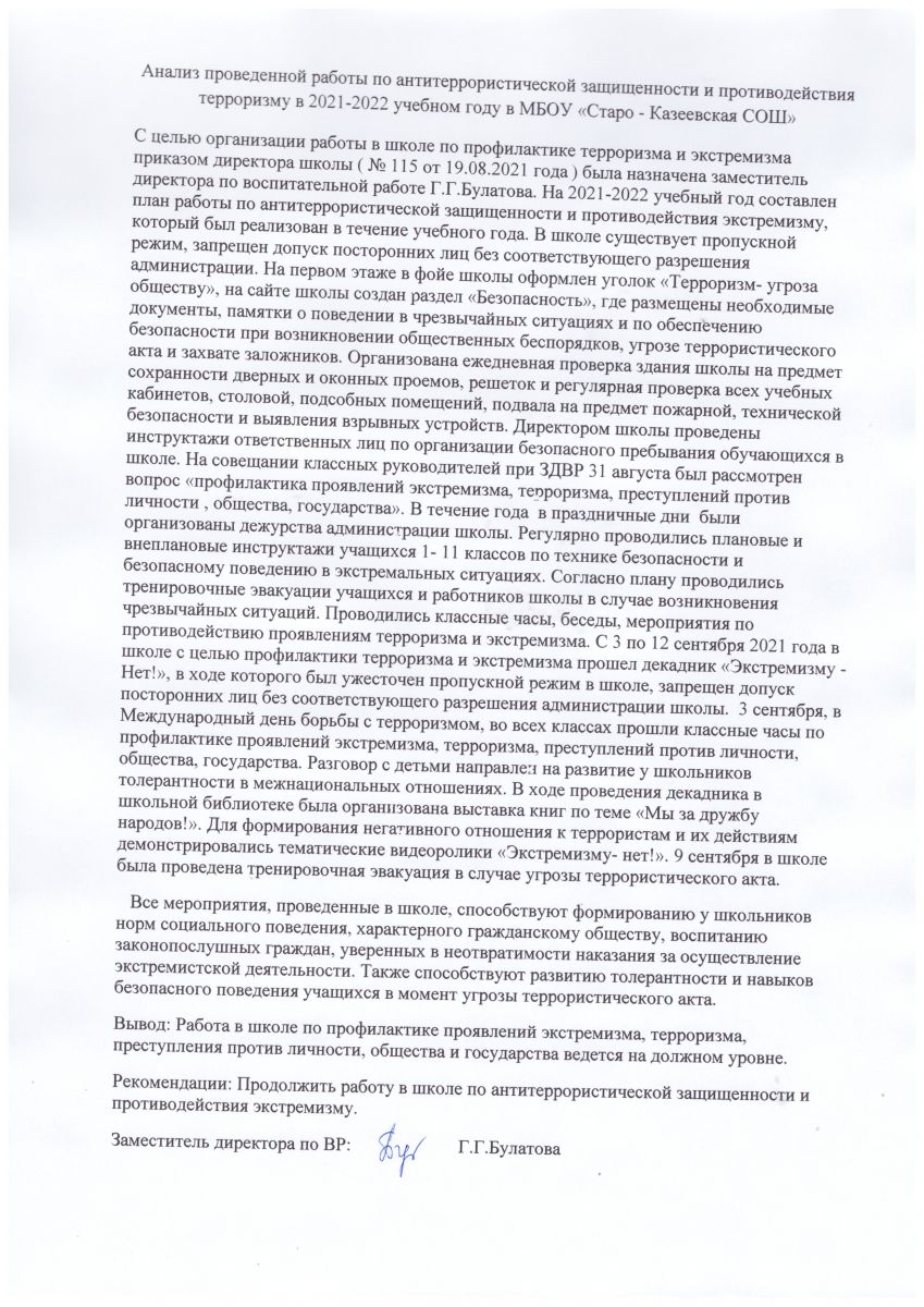 План по обеспечению безопасности антитеррористической защищенности на 2022-2023 учебный год