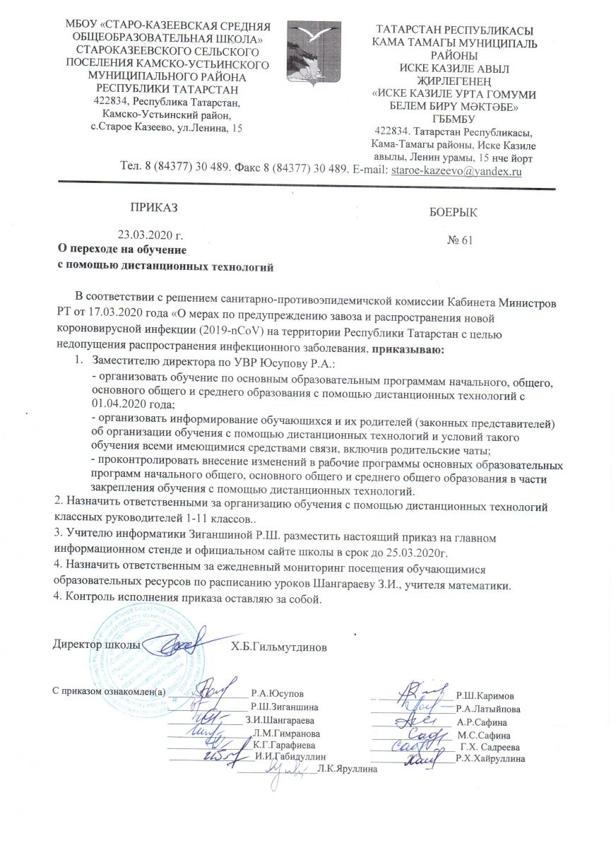 МБОУ "Старо-Казеевская СОШ" с 01.04.2020 г. организуют учебный процесс в дистанционном формате с помощью онлайн-платформ, на время карантина уроки будут представлены в другом формате.