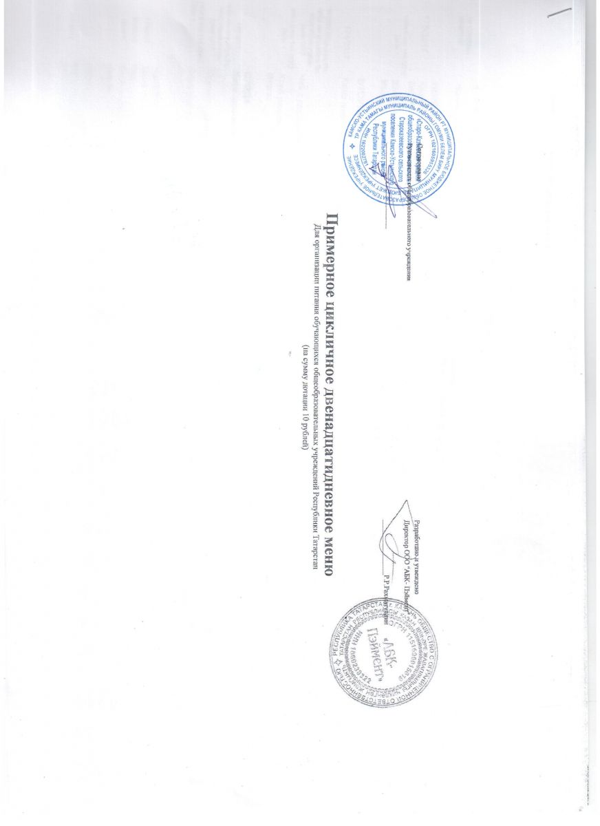 Примерное цикличное двенадцатидневное меню (на сумму дотации 10 рублей) (титульный лист)
