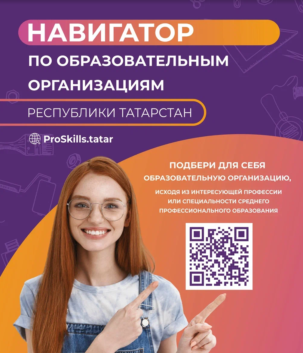 В целях популяризации рабочих и инженерных профессий, а также развития системы профессионального образования для обеспечения реального сектора экономики квалифицированными кадрами Министерством образования и науки Республики Татарстан совместно с автономной некоммерческой организацией «Центр развития профессиональных компетенций» разработан Навигатор по образовательным организациям Республики Татарстан, реализующим программы среднего профессионального образования.