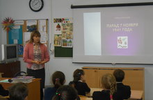 24 октября в школе был проведен Урок Мужества, посвященный военным парадам 7 ноября 1941 года, проходившим в Москве, Воронеже и Куйбышеве.