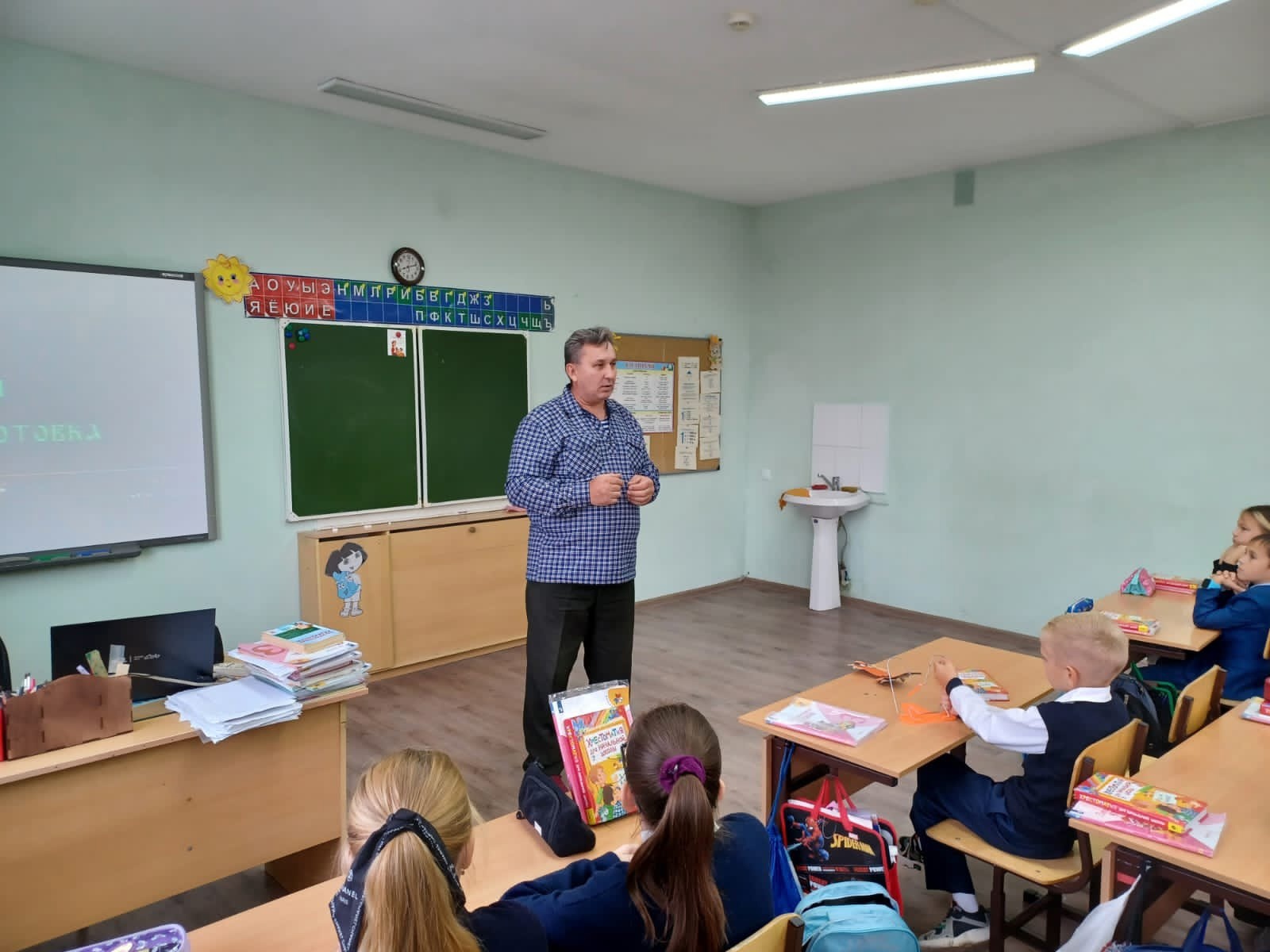 В гости к обучающимся 3Б (кл. руководитель Соколова Ю.Г.) приходил представитель Совета отцов класса Сабиров Э.Ш., который рассказал о профессиях военного и учителя. Эмиль Шагитович служил в военных войсках в Узбекистане, где подготавливали молодых бойцов для военной службы. Каждый день проходила тренировка на различных объектах. Эмиль Шагитович акцентировал внимание на важность утренней зарядки, для того, чтобы быть бодрым, выносливым, сильным. "В армии у нас, как в вашем классе все были дружными, помогали друг другу, были едины как семья", - вспоминал гость. В данное время Эмиль Шагитович работает в кадетской школе, где преподаёт технологию и ведёт кружок "Барабанщики". В завершении встречи ребятам показали фильм про военную службу, где молодые бойцы проходили тренировку. После просмотра дети задавали интересующие вопросы.