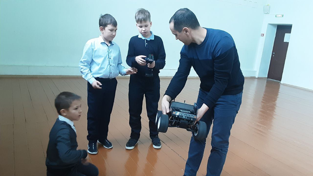 Обучающиеся начальной школы готовятся к автогонкам. Радиоуправляемые автомодели (RC) настраиваются и каждый участник совершенствует свый навык вождения. Посмотреть видео