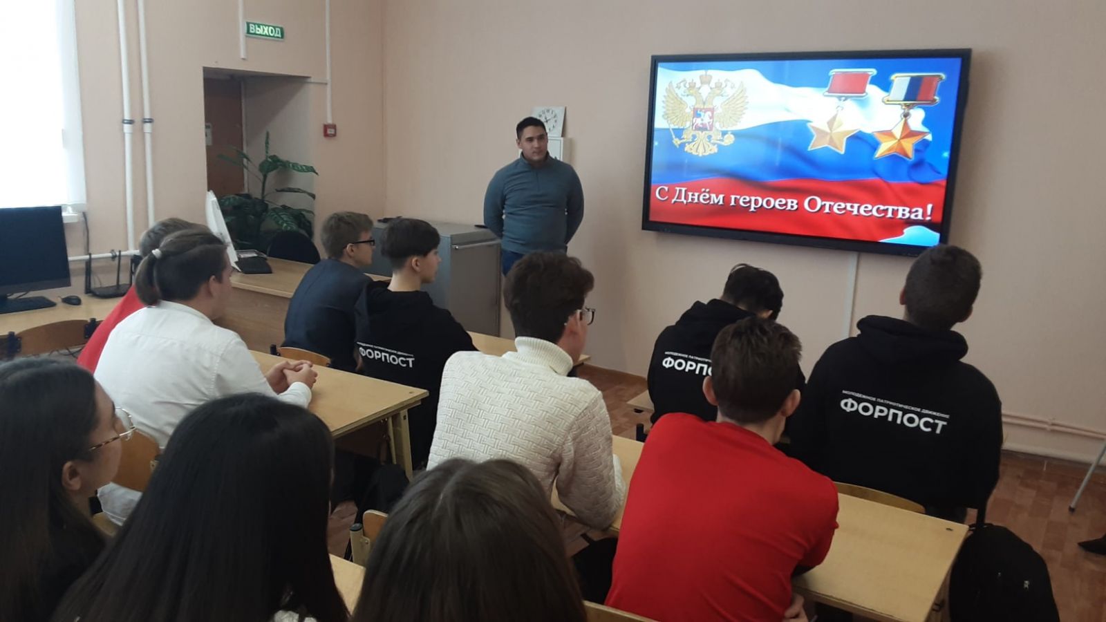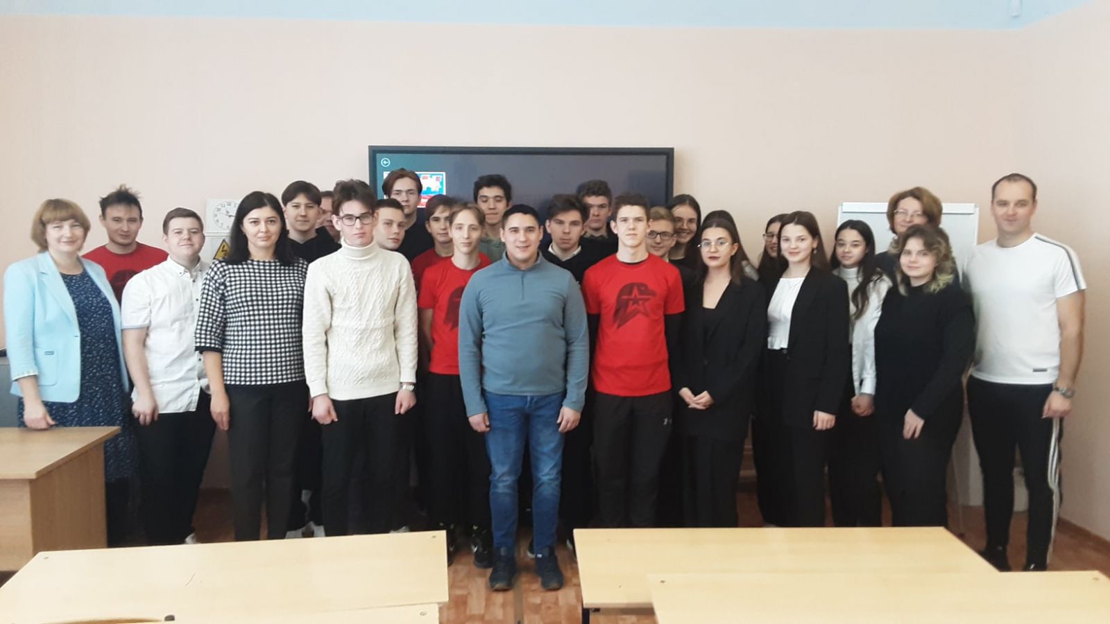 В Камскоустьинской школе 9 декабря прошла встреча с участником специальной военной операции на Украине. Офицер, выпускник Казанского танкового училища Хайруллин Эмиль посетил родную школу: побеседовал с одиннадцатиклассниками, рассказал о подвигах российских военнослужащих. Старшеклассники слушали с большим интересом и задавали серьезные вопросы. Эмиль рассказал ребятам о том, как ещё в школе мечтал стать военным и как шёл к своей мечте, о своей службе в армии. На примере Эмиля старшеклассники увидели, что настоящие герои живут рядом, что мужество, храбрость, любовь к близким, Родине – это качества настоящего человека.