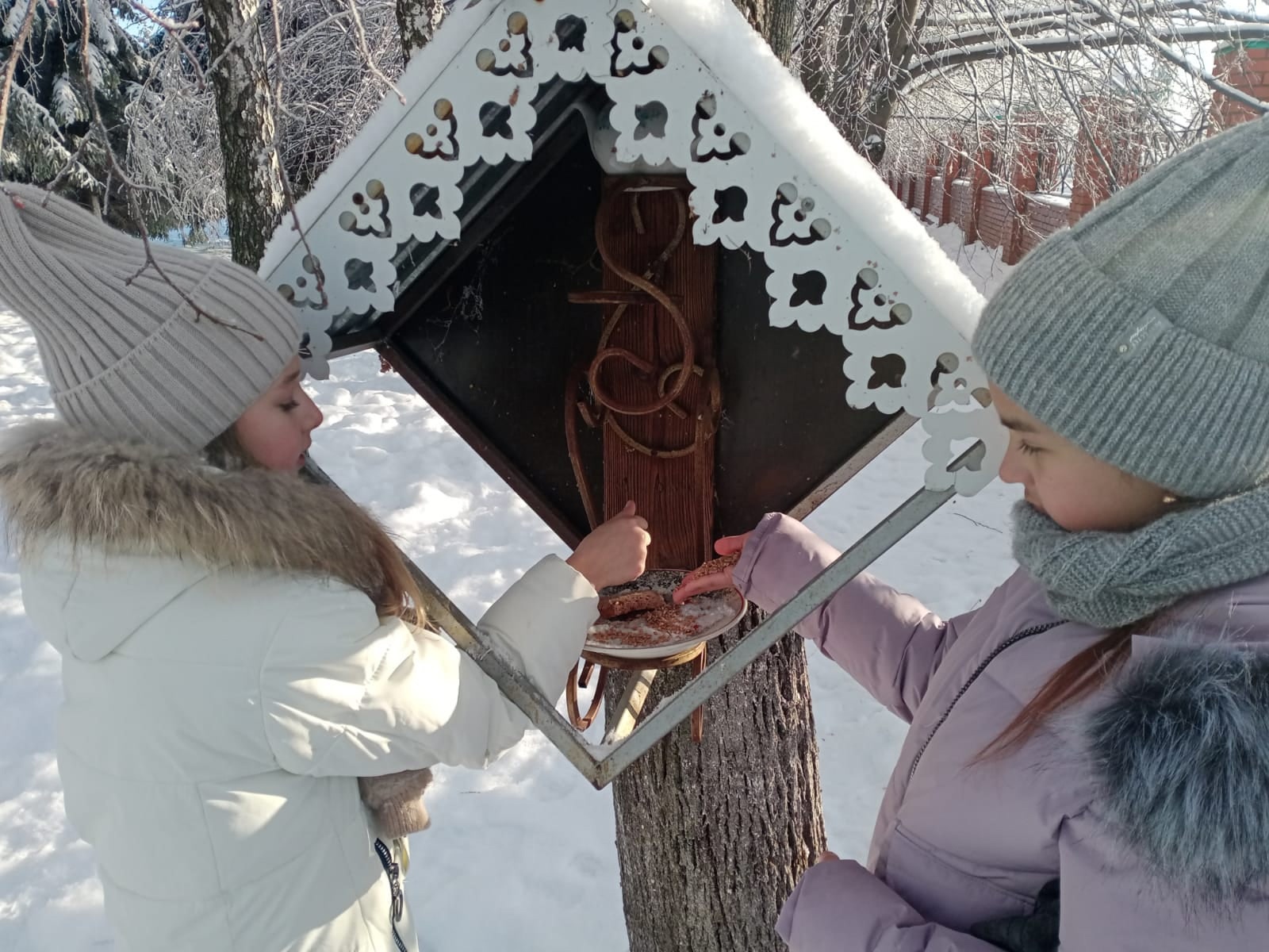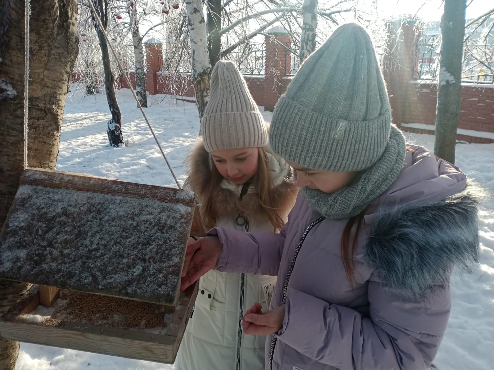Наступила пора позаботиться о птицах. Учащиеся 3в класса вместе с классным руководителем Гурьяновой В.В. наполнили кормушки, расположенные на территории школы.