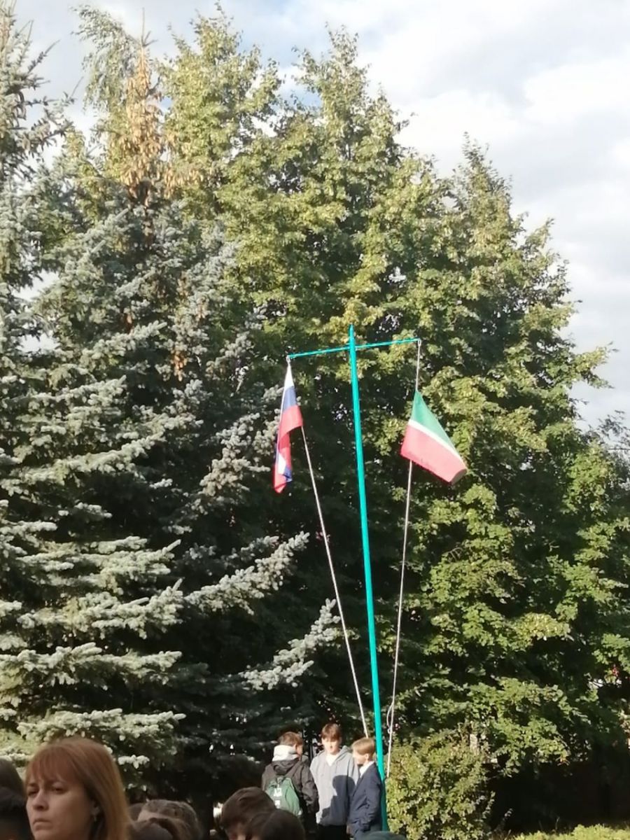 В понедельник 5 сентября в России прошли линейки с поднятием Государственного флага Российской Федерации, прослушиванием гимна. Еженедельное поднятие Государственного флага РФ в школах нашей страны - это новая инициатива, которую поддержал президент РФ Владимир Владимирович Путин. Поднятие государственного флага - это особый торжественный ритуал, на котором будем освещать планы школы на неделю, чествовать обучающихся по итогам прошедшей недели за спортивные, учебные, общественные достижения. Почетное право поднять флаг Российской Федерации и Республики Татарстан в Камскоустьинской школе предоставилось юнармейцам, обучающимся 11 класса - Хамидуллину Раилю и Лысачкину Тимуру.
