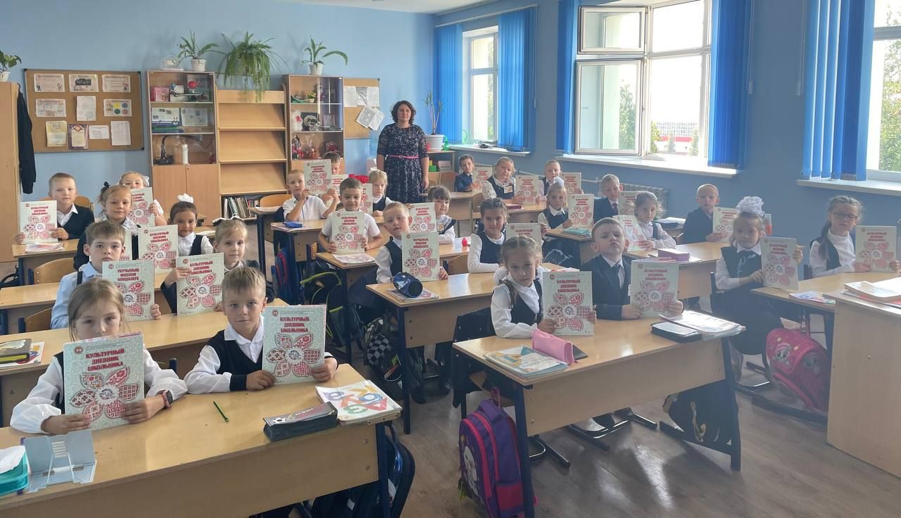 Мәдәни-белем бирү проекты кысаларында 1 «Б» сыйныф укучыларына (җитәкчесе Малафеева Ю.В) мәдәни көндәлекләр тапшырылды, алар укучыларга туган ягыбызның истәлекле урыннары һәм мәдәнияте белән якыннанрак танышырга ярдәм итәчәк.
