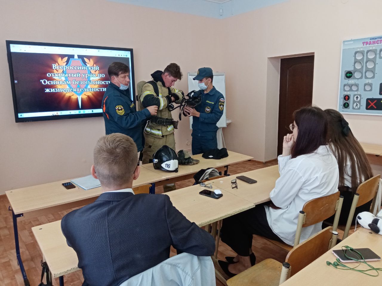 Всероссийский открытый урок ОБЖ прошёл 8 сентября в Камскоустьинской школе. В рамках данного урока школу посетили начальник караула Тарасов Ф. и пожарный Зиннуров И. 116й пожарно-спасательной части 8 ПСО ГПС ГУ МЧС России по Республике Татарстан. Страшеклассникам рассказали об истории пожарной охраны и работе пожарных, о том, как тушат пожары в наше время. Так же ребята померили боевую одежду пожарного. В конце мероприятия ребятам напомнили простые правила пожарной безопасности и телефоны вызова пожарной охраны.