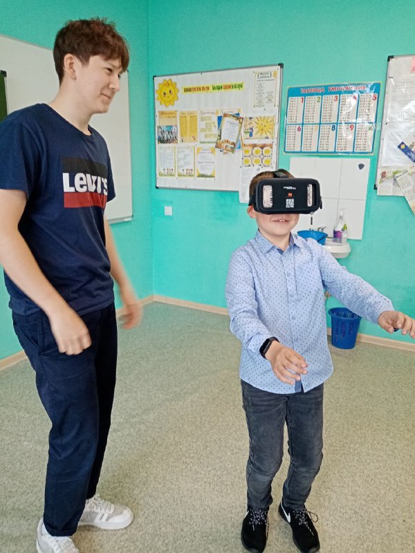 10 сыйныф укучысы Раил Хәмидуллин укучылар белән 3 баскычлы әңгәмә үткәрде һәм VR-кү злек һәм телефон ярдәмендә виртуаль чынбарлыкның нәрсә икәнлеген күрсәтте. Балалар 360 градус күзәтү белән чынлык турында видео карый алдылар.