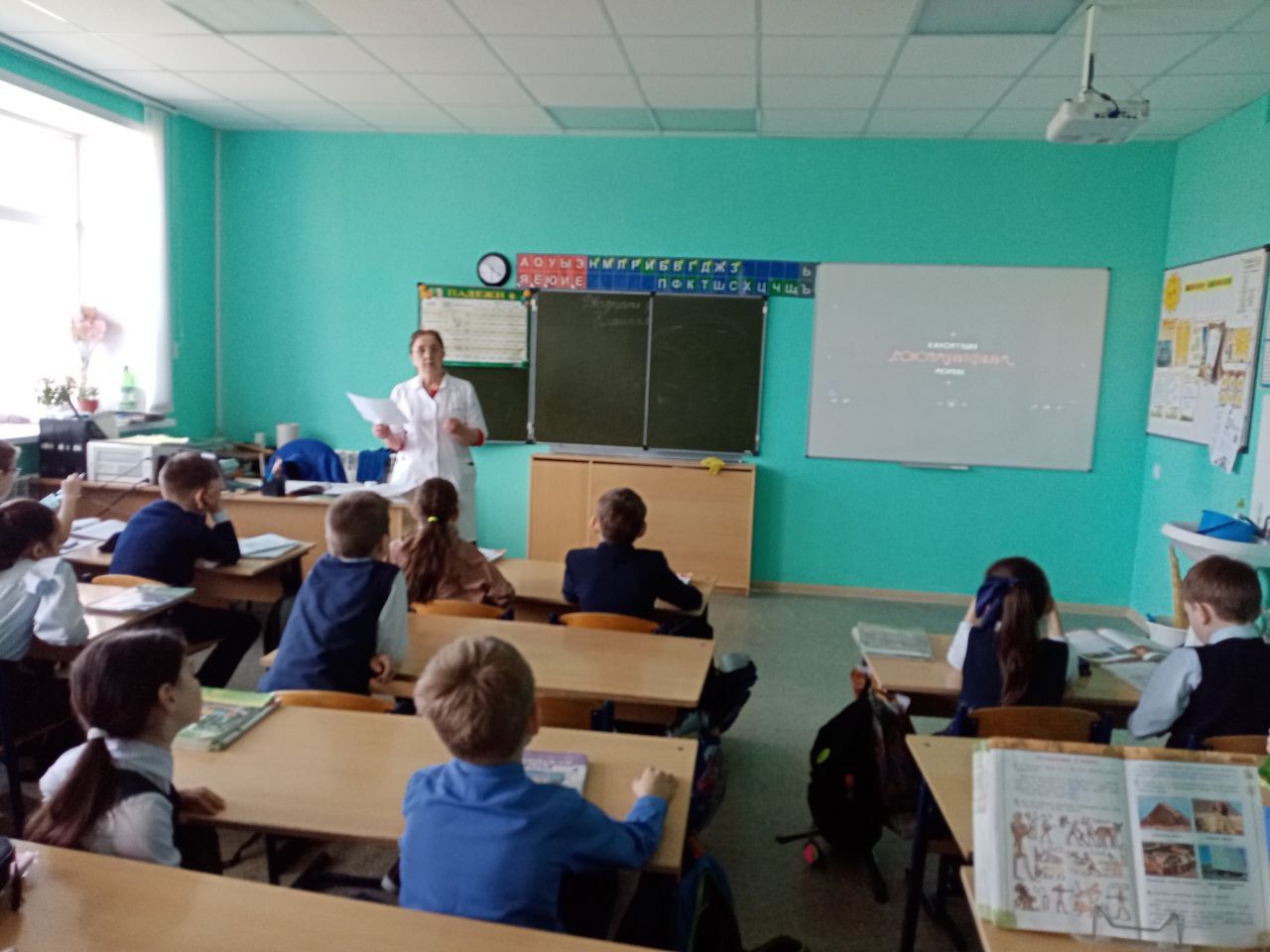 Бердәм иммунизация атнасы кысаларында вакцинациянең файдасы турында укучылар алдында шәфкать туташы Кәримова Л.Б. чыгыш ясады.
