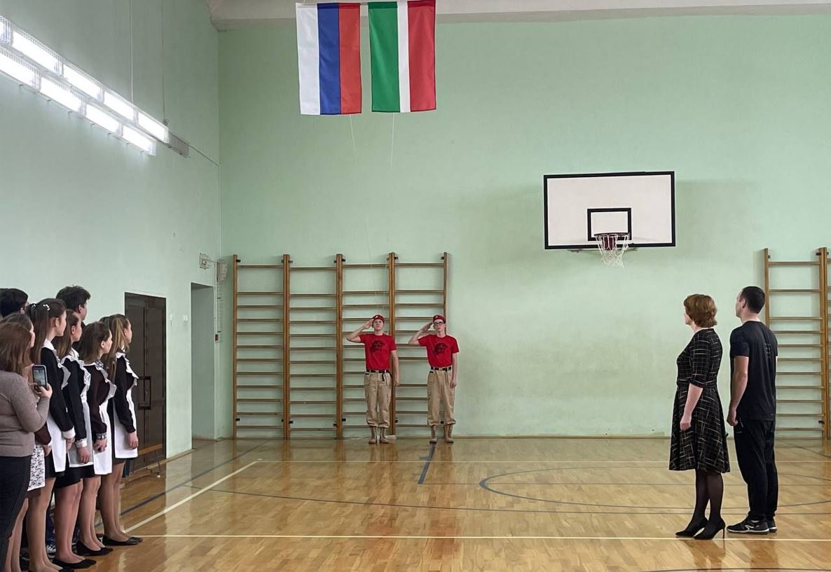 Камскоустьинская школа начала неделю с поднятия флагов и исполнения гимнов России и Республики Татарстан. Право поднять российский и татарстанский триколоры было предоставлено юнармейцам Хамидуллину Раилю и Файзуллину Инсафу.