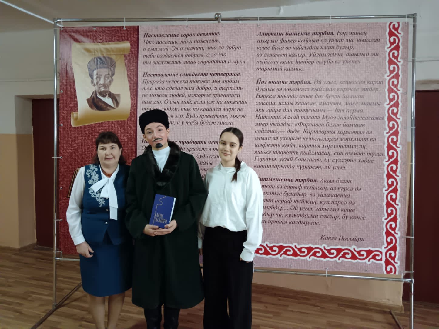 литературные вечера поэтов-юбиляров: литературный вечер, посвященный 125-летию со дня рождения Н.Исанбета, 4аб, 10 кл. (ТАТ.т), литературный урок, посвященный великому татарскому просветителю, ученому, педагогу, писателю каюму Насыри, 10 кл.(ТАТ.т)