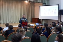 В рамках Месячника безопасности инспектор ГИМС МЧС Нуриев Н.Г. провел беседу с учащимися 4-7 классов по безопасному поведению на воде в осенний период и безопасному поведению на улице.