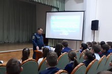В рамках Месячника безопасности в школе сотрудниками 116 ПСЧ и ГИМС МЧС был проведен открытый урок ОБЖ для учащихся начальных классов. Детям рассказали о правилах пожарной безопасности, познакомили со средствами пожаротушения и безопасном поведении на воде в осенний период.