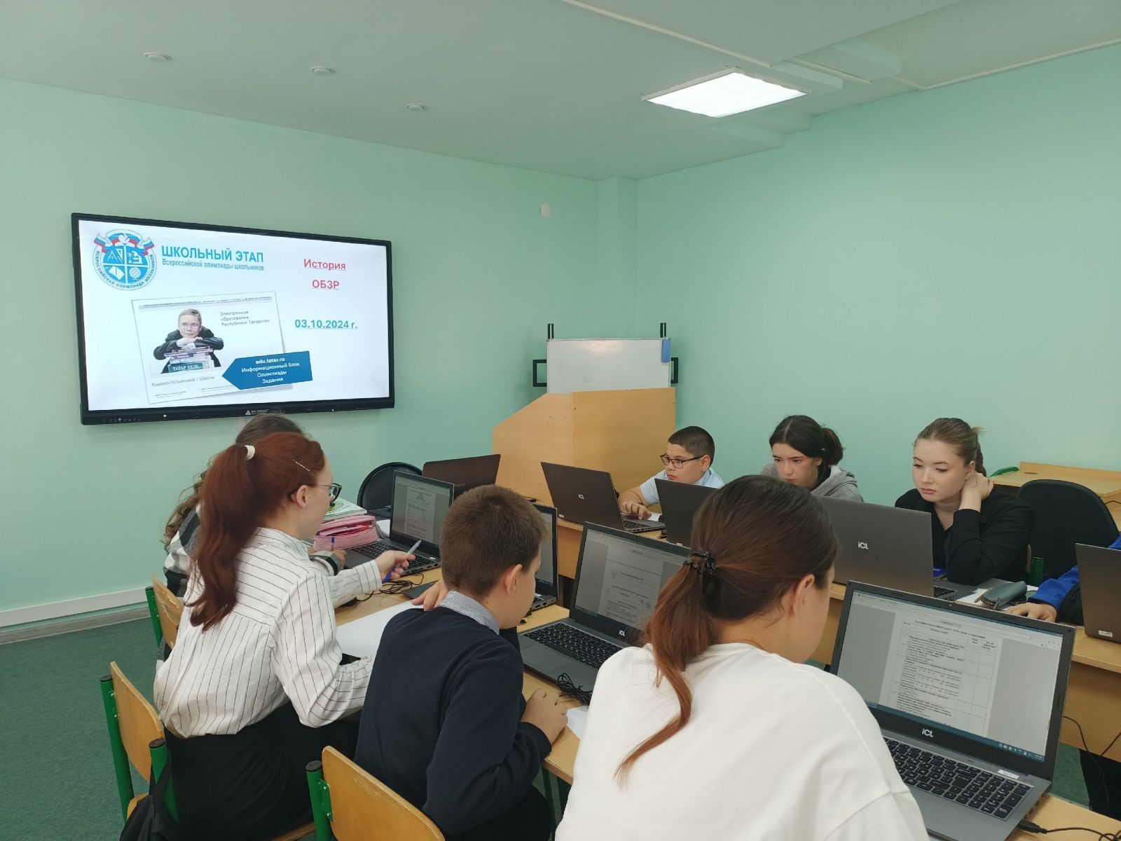 Бүген 3-11 сыйныф укучылары тарих һәм Ватанны саклау нигезләре буенча биремнәрне үтәделәр. Олимпиада биремнәрен чишкәндә, балалар шулай ук үзләренең компьютер грамоталылыгын үстерүләрен дәвам итәләр.