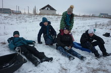 Первый хороший снег и учащиеся 6-го класса уже катаются с горки. Молодцы!