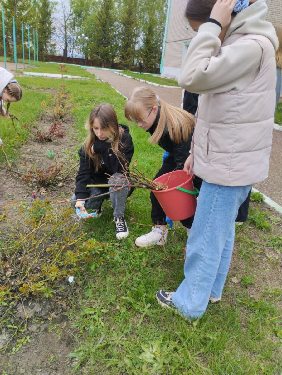 Бүген технология дәресендә 7а сыйныф кызлары Чулпан Рафаэлевна белән бергә кыш көне туңган барлык коры ботакларны, авыру һәм продуктив булмаган үсентеләрне алып ташладылар. Чәчәк ату озын һәм озын булсын өчен, Роза язны «чистартылган» каршы алырга тиеш.