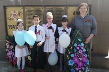 Торжественное возложение цветов к памятнику павших воинов в Великой Отечественной войне нашими учителями и учениками.
