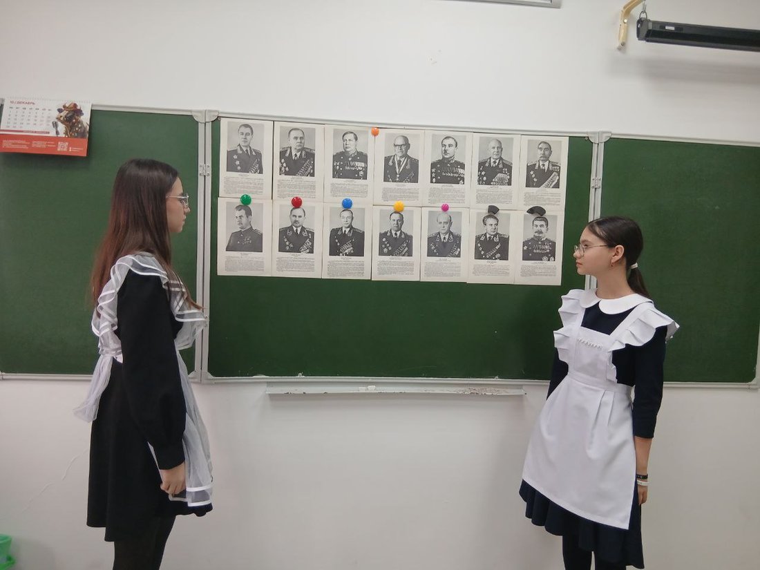 В рамках Дня героев Отечества в 7классе прошел урок мужества «Гордимся славою героев».Учитель истории Валиева Г.Ю. познакомила с историей праздника, рассказала, кого чествуют в этот день. Дети узнали о том, что во все времена наш народ защищал свою землю, вспомнили о знаменитых и выдающихся полководцах, стоявших во главе русской армии. В ходе встречи также шел разговор и о Героях современной России, тех, кто порой ценой собственной жизни сражался и сражается за наше счастливое будущее и мирное небо над головой, также вспомнили о наших земляках, участвующих в СВО.