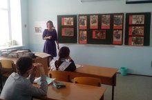 Бүген музей хезмәткәре Гимадиева Г.5-8 сыйныфларга "Батырлар даны мәңгелек!"дигән темага ачык сыйныф сәгате үткәрде.