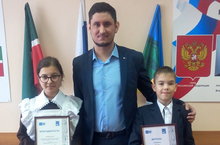 Ученик 4 класса Айсин Б. в номинации "Я выбираю спорт!" занял 1 место (руководитель Айсина А.Ш.), ученица 11 класса Каримуллина А. в номинации "Братских народов союз вековой..." стала лауреатом (руководитель Каюмова Л.Х.). Для награждения и вручения ценных призов был приглашен начальник Камско – Устьинского почтамта УФПС «Татарстан почтасы» ФГУП «Почта России» Мингалиев И.А.