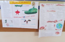 Учащиеся 4 класса выполнили творческий проект "Нам не нужна война". Разделившись на группы, они выпустили стенгазеты "Мир нужен всем", "Дети против войны", "Живя в мире - не забывай о войне".
