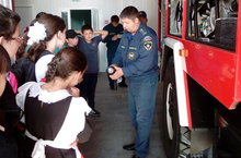 Сегодня наши ученики побывали в гостях пожарной части. Сотрудники МЧС провели практическое занятие с ребятами.
