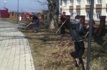 Сегодня ученики 8 и 9 классов очистили территорию школы от сухих листьев.