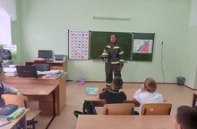 В рамках Дня отца состоялась для учащихся 1класса мастер- класс. Папа ученика 1класса Закиров А.Х. рассказал и показал боевую одежду пожарного.