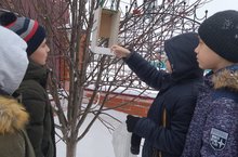 Учащиеся 6класс участвовали в акции "Покормите птиц зимой".Они заполняют кормушки зернышками,хлебом и семечками.